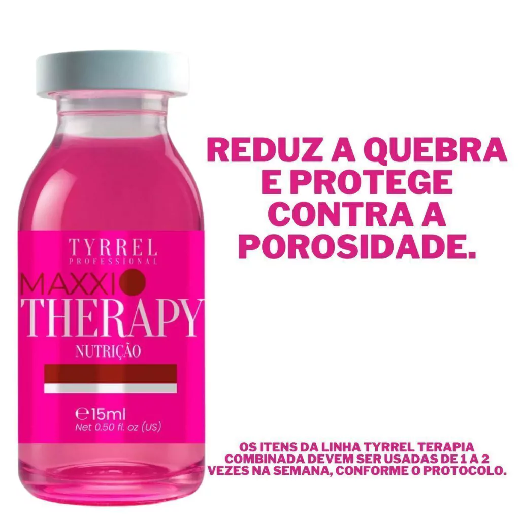 Ampola Maxxi Therapy Hiper Nutrição: Para cabelos ressecados e coloridos enriquecida com óleo de linhaça. Protege contra a ação excessiva de forças externas, como sol, vento e poluição.Evita o desbotamento da cor e preserva o brilho intenso por mais tempo.
